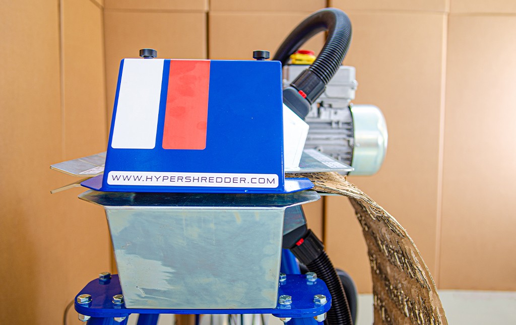 I tritacartoni industriali HYPER SHREDDER trasformano i cartoni usati o inutilizzabili in materiale da imballaggio pratico ed efficace, disponibile in due formati: rete elastica, strisce o chips.