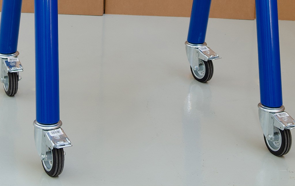 Grandi ruote con freno di stazionamento, per una movimentazione agevole e una stabilità perfetta durante l’uso.