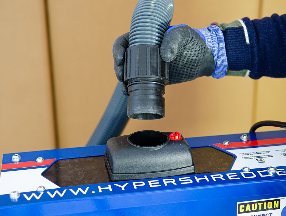Tutti i modelli di tritacartone Hyper Shredder sono predisposti con collegamento per impianti di aspirazione delle polveri.